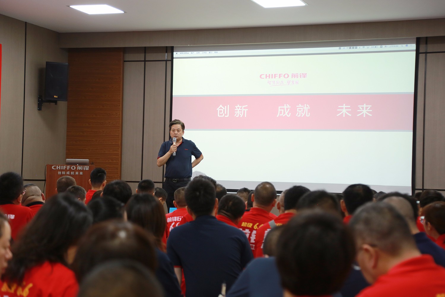 集團總經(jīng)理陳敦勇在紅歌大賽上致詞