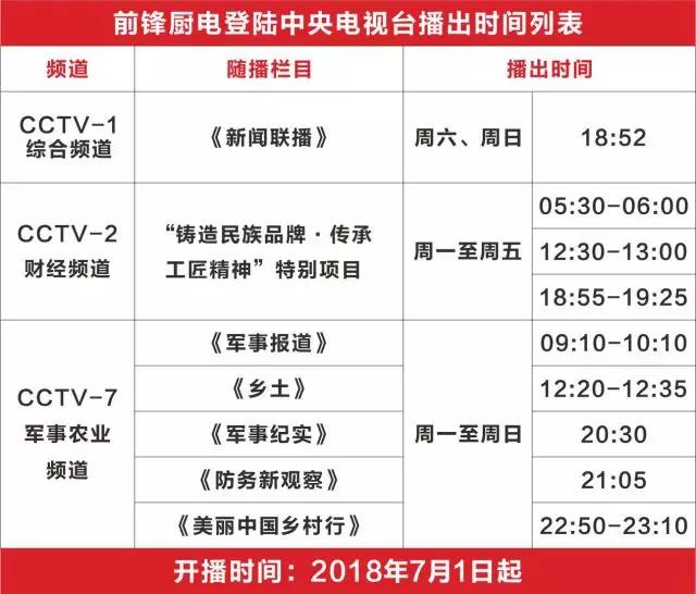 前鋒廚電正式開啟霸屏模式,CCTV-1、CCTV-2、CCTV-7盛大熱播